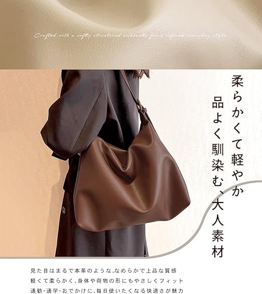 - 落ち着いたレザー調の質感と、アクセントになる裏地カラーが魅力の2wayショルダーバッグ。見た目はシンプルでも、A4サイズ対応・内ポケット・ファスナー開閉など、使い勝手にこだわった設計。柔らかく軽やかなフェイクレザー素材で、毎日の通勤や通学、お出かけにもぴったりの頼れるアイテムです。